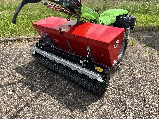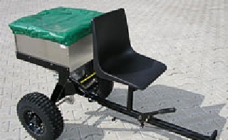 Einsatz für Streusalz, Sand, Feinkies, DüngemittelTechnische Daten Handbremse und Fußbremse einen Sitz Füllvolumen von 100 Liter Wanne und Streuvorrichtung aus Edelstahl max. 200 kg Nutzlast (inkl. Fahrer) große, kugelgelagerte Räder : 145 x 70 - 8 Maße LxBxH: 960 x 800 x 920 mm Streubreite 2-5 m Streumenge 9fach verstellbar Eigengewicht: 32,5 kg Die Aufnahme für das Zugmaul des Einachsers ist 68 mm hoch. Der Innendurchmesser der Bohrung beträgt 16 mm. Andere Aufnahmen müßten in Eigenarbeit gefertigt werden (Original abtrennen und neue anschweißen). Der Abstand zum Boden beträgt 45 cm (bis Unterkante Anschlussstück). Der Einachs-Streuanhänger ist serienmäßig mit einer Hand- und einer Fußbremse ausgestattet. Die großen Räder (145 x 70 - 8) in Blockprofil sind doppelt kugelgelagert. Der Anhänger verfügt serienmäßig über eine Kunststoff-Sitzschale.
