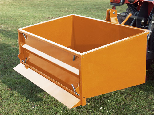 Diese Mulde wird gern zum Transportieren von z.B. Sand, Erde, Steine, Holz eingesetzt. Eine Zuladung ist bis 300 kg möglich.Betrieben wird das Gerät am Dreipunkt-Anbaurahmen Kat.I eines Traktors. Die Transportbox ist mechanisch kippbar. Die hintere Bordwand kann sehr leicht in Sekunden komplett abgenommen werden. Aber auch ein Pendeln oder Klappen ist möglich. Transportbox für Traktoren max. 300 kg zuladbar Ladevolumen 0,25 m³ Innenmaße (LxBxH): 1000 x 617 x 453 mm Außenmaße (LxBxH): 1070 x 863 x 635 mm 58 kg Eigengewicht einfache Montage am Heckdreipunkt mechanisch kippbar leicht zu öffnende, pendelnde oder klappbare Bordwand stabiler Unterboden komplett einbrennlackiert Service & QualitätService, Wartung und Ersatzteilversorgung sind damit überhaupt kein Problem und langfristig gewährt.