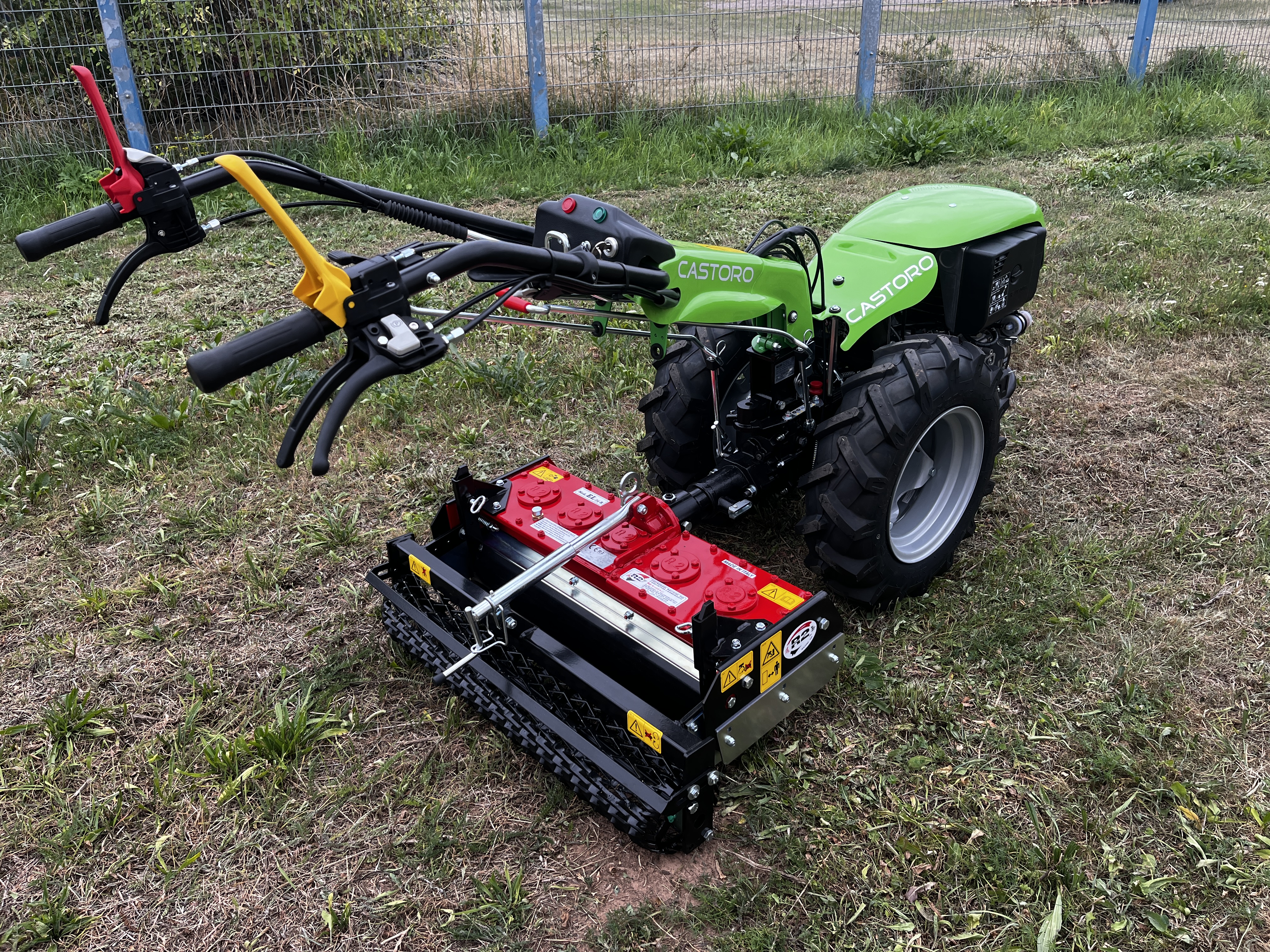 Wir bieten Ihnen eine Anbau-Kreiselegge für Ihren Einachser an. Serienmäßig ist das Gerät mit einer Gitterwalze ausgestattet. Diese eignet sich für vorwiegend trockene Böden. Die optional mögliche Käfigwalze ist für eher feuchte Böden empfehlenswert. Die Glattwalze sollte man auswählen, wenn das feinkrümlige Arbeitsergebnis nachgeglättet werden soll.