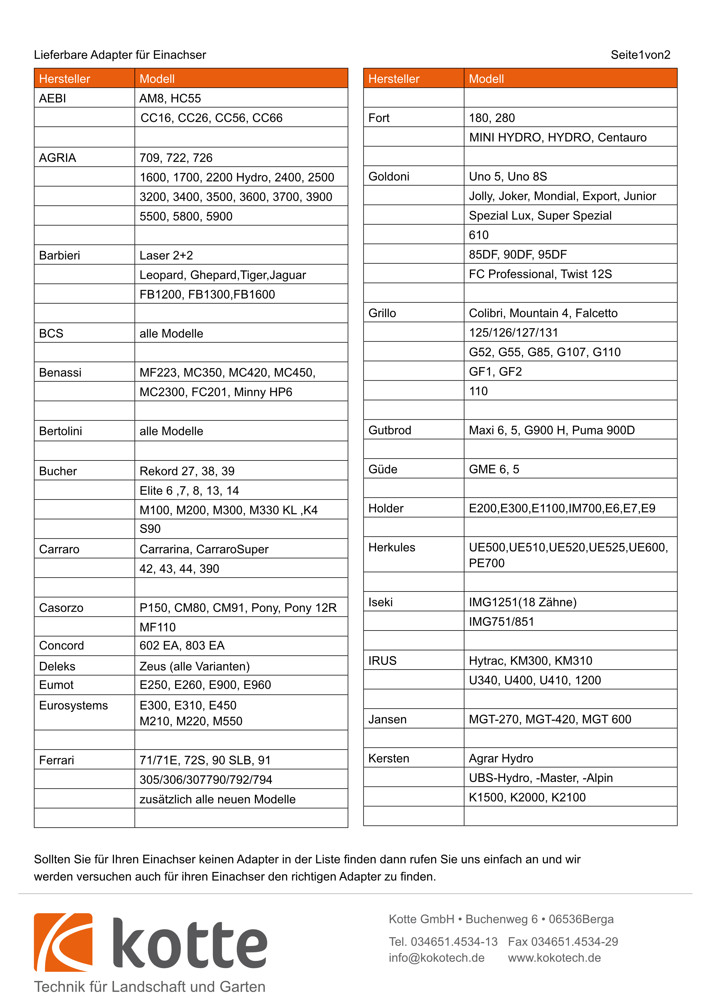 Und das Beste zum Schluss: Wir können für nahezu alle am Markt befindlichen Einachser einen passenden Adapter anbieten. Eine Liste der verfügbaren Adapter finden Sie am Ende dieser Beschreibung als Link. Sollte Ihr Einachser dort nicht ausgeführt sein, kontaktieren Sie uns einfach. Und wir schauen, ob wir eine Adaption anpassen können.