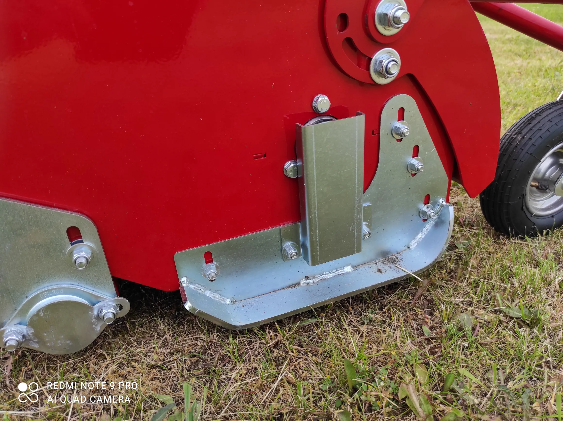 Serienmäßig sind zwei stufenlos höhenverstellbare Gleitkufen mit breiter Auflage verbaut. Die Breite der Kufen verringert die Gefahr des Eintauchens in feuchte Böden. Optional kann das Gerät auch mit einer Nachlaufwalze bestellt werden. Diese eignet sich vor allem bei unebenem Gelände, da der Mulcher durch die Walze immer auf der höchsten Position gehalten wird und damit die Gefahr, dass die Messer Bodenkontakt haben, reduziert wird. Als weitere Option sind stufenlos höhenverstellbare Vorderräder auswählbar. Diese sind bei Anwendungen zu empfehlen, bei denen viel gelenkt werden muß (um Bäume, Büsche oder sonstige Hindernisse). Durch die großen, luftbereiften oder vollgummierten Räder läuft der Mulcher auch bei huckligem Gelände sehr ruhig. Kleine, schmale Kunststoffräder wie sie bei Konkurrentprodukten verbaut werden, haben hier wesentliche Nachteile. Bei Arbeiten am Hang können die Räder zudem fixiert werden. Das Gespann hat dann einen sauberen Geradeauslauf und der Mulcher drückt das Gespann nicht hangabwärts.